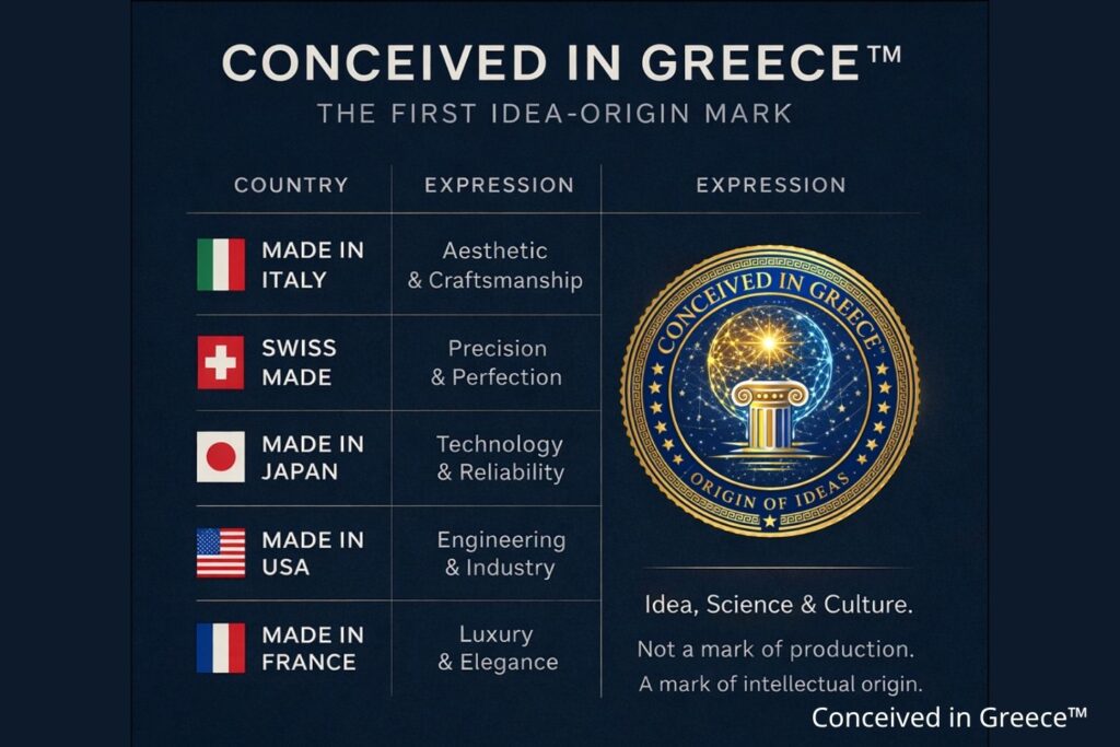 Με αυτό το πνεύμα, το Conceived in Greece™ φιλοδοξεί να αποτελέσει σημείο αναφοράς για ιδέες, επιστημονικά μοντέλα και καινοτόμες προσεγγίσεις που συνεχίζουν να γεννιούνται μέσα από την ελληνική παράδοση της σκέψης — εκεί όπου η ιδέα προηγείται της μορφής και η γνώση εξελίσσεται μέσα από τη σύνθεση.